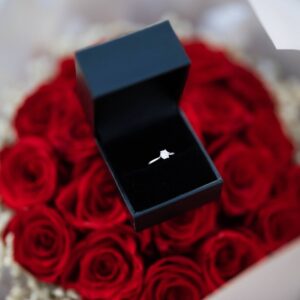 Bague de Fiançailles Halo – Diamant Princess & Zircone